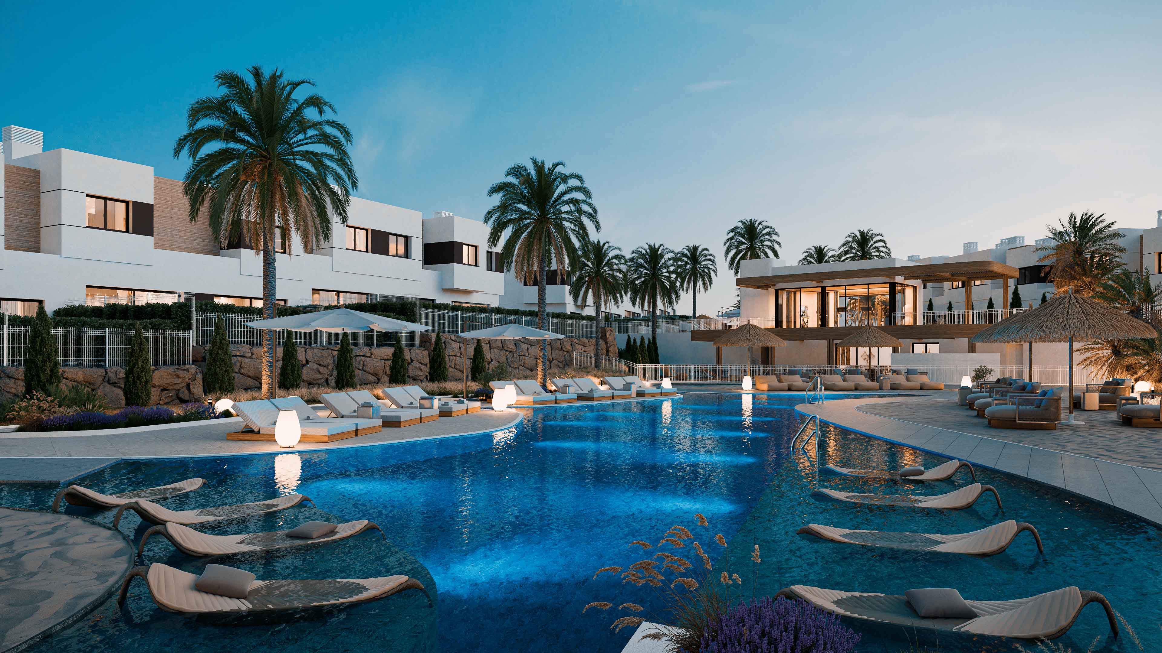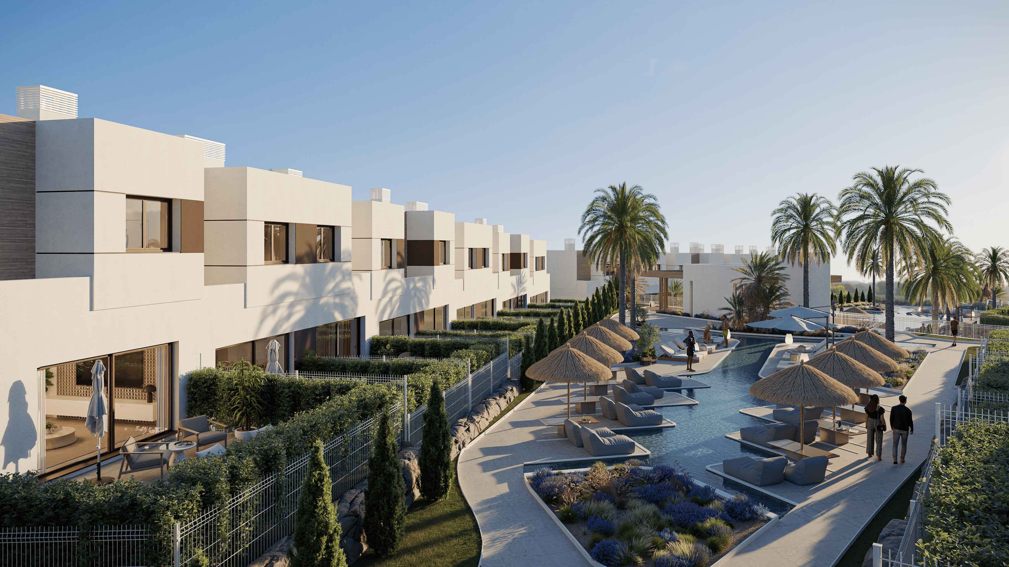 Frente a un gran bosque mediterráneo de frondosos pinos emerge Savia, una promoción de obra nueva en Mijas Costa de viviendas adosadas de 3 y 4 dormitorios. Con excelentes prestaciones individuales y magníficos servicios comunitarios, Savia es la mejor opción para comprar una casa en Mijas Costa, pensada para tu proyecto de futuro.